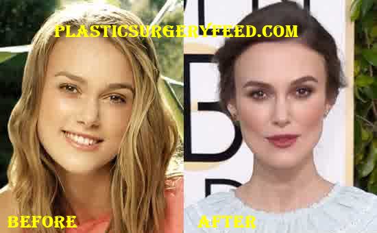 Plastic surgery is normal among celebrities in Hollywood. Breast implants and rhinoplasties are nothing new there. Check out the table below to see Keira Knightley's plastic surgery history.
