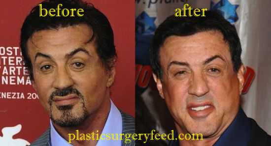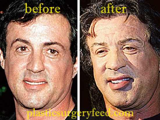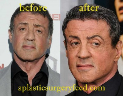 Even portrayed a strong gentleman quite much, Sylvester Stallone seems has undergoing more than once plastic surgery procedure., His before and after picture shows us that he might got facelift and forehead procedure. His face that seems tighter than before strengthens the indication he got facelift procedure not too long ago. Some of his face bit lifted unnaturally as the result from the facelift procedure done. Sylvester Stallone also rumored having forehead lift procedure too. Actually he can get a rid of saggy skin with the botox that was injected into glabellas area. But it may never enough for him that why he decide to do forehead lift.